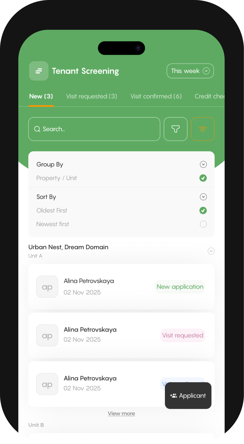 Each applicant has a complete profile with conversations, viewing requests, and documents so you can make informed decisions.