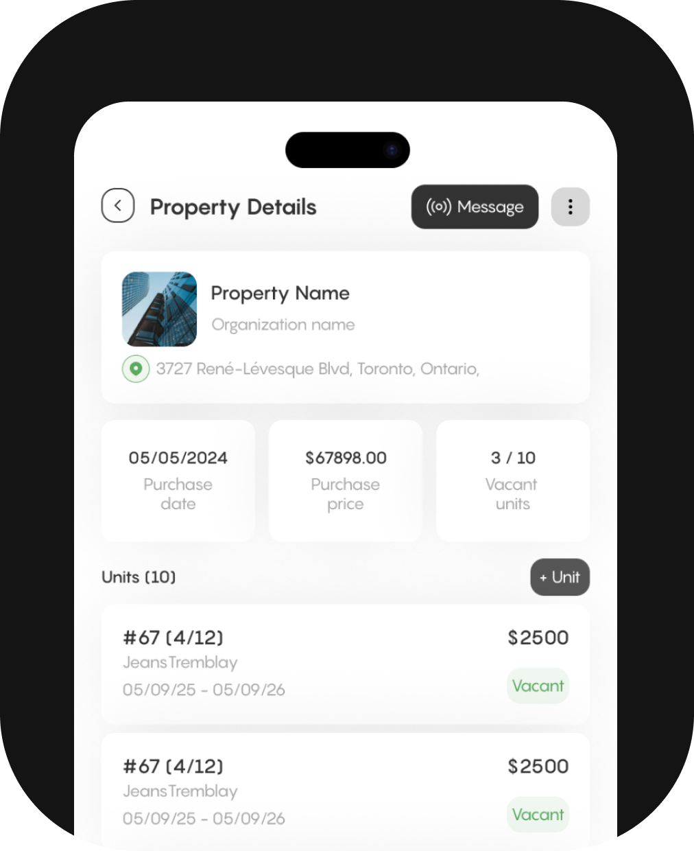 Everything is organized for you : tenants, documents, communications, and tracking.